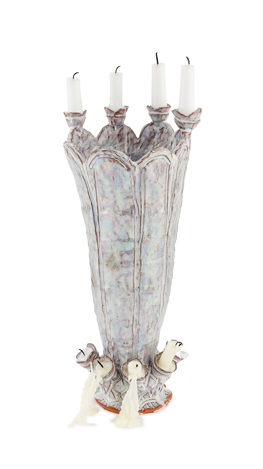 earthenware, glaze, mother of pearl, candles
